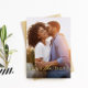 Partagez les nouvelles de votre fiançailles et de votre mariage à venir avec cette photo verticale enregistrer la carte de date avec un élégant traitement de type en feuille d'or qui se trouve au bas d'une photo verticale. Le type a de la place pour les noms longs, plus la date de localisation et d'autres informations pour les amis et la famille comme un site Web. Le dos est un teint neutre avec un motif de texture subtil. La couleur peut être ajustée en cliquant sur "Personnaliser".