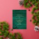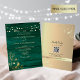 Invitation En Aluminium Code QR de mariage vert émeraude et or