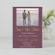 Moderne, QR Code, photo, lavande violet, feuille d'or Mariage Enregistrer la date. Vous pouvez le personnaliser avec vos propres détails, modifier la photo et ajouter votre propre code QR.