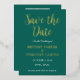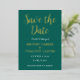 Moderne, QR Code, photo, vert émeraude, feuille d'or Mariage Enregistrer la Date. Vous pouvez le personnaliser avec vos propres détails, modifier la photo et ajouter votre propre code QR.