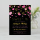 Pink and gold Sweet 16 invitation à la célébration en noir avec coeurs roses et contours en feuille d'or de pierres précieuses. Glam douce invitation de 16 parties en rose, noir et or. Invitation sweet sixteen avec feuille d'or et texte rose, coeurs roses et pierres précieuses.