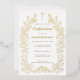 Invitation feuille d'or pour confirmation croix florale moderne