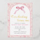 Invitation En Aluminium Coquette Toile rose Bow 1er anniversaire fille