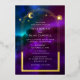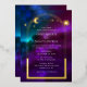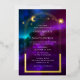 Cosmic Purple Turquoise Or Argent Soleil Lune Astronomie Espace Foil Foil Mariage Invitations présente soleil, lune et étoiles avec un cadre doré sur un arrière - plan cosmique violet, turquoise et bleu coloré. À l'intérieur, vous trouverez vos informations d'invitation de mariage personnalisées. Conçu pour vous par ©Evco Studio www.zazzle.com/store/evcostudio