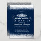 Invitation de Naissance Quinceañera Élégante et Moderne en Bleu Royal et Paillettes d'Argent sur Fond Ardoise