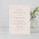 Faire-part de mariage minimaliste et moderne avec vos noms et détails mariages en feuille d'or rose avec accents de script de calligraphie. L'arrière - plan crème peut être changé en une couleur de votre choix. Conçu pour coordonner avec notre collection de mariages Modern Elegance.
