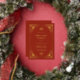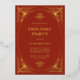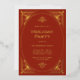 Ces élégantes invitations de fêtes de Noël ont une touche moderne sur l'art déco classique. Un cadre géométrique orné et doré et ornementé décorent un arrière - plan rouge festif pour un look de vacances classique mais glamour.