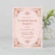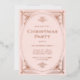 Ces élégantes invitations de fêtes de Noël ont une touche moderne sur l'art déco classique. Un cadre géométrique orné et rose en feuille d'or orné et ornementé décorent un arrière - plan rose vif pour un look de vacances classique mais glamour.