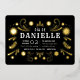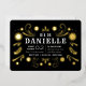 Célébrez un anniversaire thématique du Jour des Morts avec ces invitations mignonnes avec des fleurs en feuille d'or luxueuses entourant vos détails de fête en lettres blanches sur un arrière - plan noir.