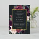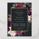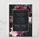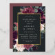 L'invitation à la répétition florale chic comporte une bordure de marsala bordeaux violet, rose vif et bleu poussiéreux, avec feuillage botanique luxuriant et verdure et garniture en feuille d'or. Personnalisez avec votre cérémonie de mariage la répétition et les détails du dîner en lettres modernes sur un riche arrière - plan de charbon de bois.