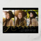 Un script ludique mais simple diplômé en feuille se trouve au bas de 3 photos verticales. Le texte personnalisé comprend la place pour le nom du diplômé ainsi que les détails de l'école et de l'année. Le dossier noir neutre est doté d'un simple motif de grille, et la couleur peut être changée en cliquant sur "customiser plus loin". Le centre a de la place pour le texte d'invitation de la fête de remise de diplômes ou il peut être laissé vide. Annoncez la réalisation de votre diplômé à vos amis et à votre famille avec ce design!