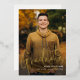Une carte de Faire-part d'obtention d'un diplôme d'études supérieures en écriture moderne avec papier à la main, un diplôme d'études supérieures et une photo de portrait à fond saigné sur le devant avec le nom et les détails de graduation. Le dos a une deuxième photo avec des détails supplémentaires pour un faire-part ou une fête. Cliquez sur le bouton Modifier pour customiser cette conception.