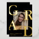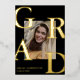 Une photo de l'invitation de la fête de remise des diplômes, avec une photo du diplômé, avec un texte qui dit, GRAD, cours de 2023, et leur nom en feuille d'or. Au contraire, une invitation à la fête élégante. Vous pouvez modifier les styles de police en cliquant sur le lien personnaliser après la personnalisation.