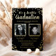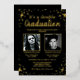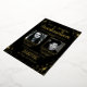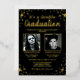 Élégantes invitations de double diplomation avec un fond noir stylé qui peut être changé en n'importe quelle couleur, des photos des deux diplômés, une pluie de confettis en véritable feuille d'or, et un modèle de double célébration moderne facile à personnaliser.