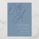 A beautiful typographiy based monogram wedding invite featuring your initials in oversized silver foil script lettering at the top, in tone on tone shades for a watermark effect. Personalize with your wedding details in classic serif lettering aligned at the lower right. Our Dusty Blue Colorway is à elegant mix of ethereal blues, with white and blue-gray lettering on a dusty medium blue background.