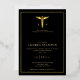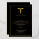 Une illustration du symbole du caducéum pour la profession infirmière décore cette invitation élégante et classique à la fête de remise des diplômes d'infirmière qui est simple mais sophistiquée, intemporelle et élégante. Il dispose également d'un cadre en or brossé dessiné à la main. Le caducée, le cadre et le titre sont en véritable feuille d'or. Le design typographique contemporain est surélevé par les teintes dorées et la disposition minimaliste. Customisez chaque ligne de texte. Noir et or.