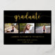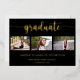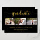 Invitation En Aluminium Elégant 3 Photo Graduation Black Gold