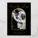 Pour cela sauver la date, la photo du couple est entourée d'un vrai cadre d'arc en feuille. Choisissez de l'or, de l'argent ou de l'or rose pour le papier. Les noms du couple, la date du mariage et l'emplacement sont sous le cadre. Le dos de la carte est noir.