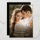 Invitation En Aluminium Élégant Black Gold Script Photo Mariage Monogramme