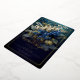 Elégant style baroque foncé et moody bleu et blanc floral "SURPRISE" design de fête d'anniversaire. Le lys blanc des fleurs de la vallée et les fleurs d'aubépine bleu foncé avec la végétation luxuriante et verdoyante, sur un arrière - plan turquoise à bleu foncé. Ajoutez à cela le luxe d'une véritable feuille d'or, et vous avez une fête d'anniversaire qui est à la fois sophistiquée et intemporellement élégante, mais aussi radicalement moderne.