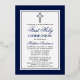 Elégante Marine Bleu et Argent Première Sainte Communion Invitation avec Croix. Cadre à huile d'argent. Croix de pétrole en argent.