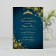 Invitation En Aluminium Elégant Blue Gold Tiara Rose Quinceanera