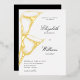 Une invitation de mariage classique, moderne et élégante en noir, blanc et or, avec un dessin à l'encre de deux fleurs calles de lys superposées numériquement d'or (pas de vrai papier d'aluminium !). Une calligraphie élégante se marie merveilleusement à l'élégance des fleurs. Un choix sympathique pour un mariage noir, blanc et or, un mariage de cravate noir formel ou un mariage aux lys calla.