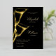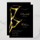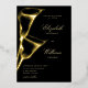 Une invitation de mariage classique, moderne et élégante en noir, blanc et or, avec un dessin à l'encre de deux fleurs de lys calla superposées numériquement d'or (pas de vrai papier d'aluminium !) sur un arrière - plan noir. Une calligraphie élégante se marie merveilleusement à l'élégance des fleurs. Un choix sympathique pour un mariage noir et or, un mariage de cravate noir formel ou un mariage avec des lys calla.