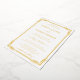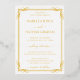 Cette faire-part de mariage classique présente un élégant design doré et blanc. Le style sophistiqué de l'invitation est mis en valeur par une bordure dorée luxueuse et des polices de caractères élégantes, ce qui donne un sentiment d'élégance intemporelle. Cette invitation formelle et traditionnelle permet aux invités de se sentir honorés et accueillis à la journée spéciale, avec une réception pour suivre la cérémonie. Le design capte magnifiquement l'essence d'une célébration de mariage raffinée et élégante.