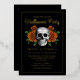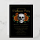 Elégant Crâne Floral Gothique Halloween Gold Foil Invitation.