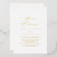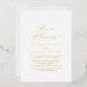 Cette élégante invitation élégante à la réception en forme d'étage est parfaite pour une soirée d'élégance rustique. Le design sobre et élégant présente une typographie de script classique et sophistiquée en feuille d'or.
