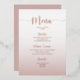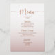 Elégant menu de mariage modèle. Simple, avec une calligraphie moderne en feuille réelle sur un dégradé doré rose/rose poussiéreux. Facile à customiser avec votre propre menu unique.