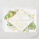 Cette élégante invitation à la réception de mariage à thème tropical présente un feuillage exotique aux accents dorés. Un cadre géométrique moderne en feuille d'or met en évidence le texte en feuille d'or. Les plaques en feuille d'or accentuent le design botanique et apportent un peu de fantaisie sophistiquée à l'invitation. "Nous nous sommes mariés !" est présenté au milieu de l'invitation. C'est l'invitation parfaite pour un faire-part mariage et une réception pour un mariage à thème tropical.