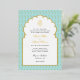Elégante, chic Véritable invitation en feuille d'or avec le Ganesh traditionnel dans une arche dorée avec un aqua et arrière - plan en cachemire d'or, Parfait pour mariage indien.Matching Haldi & mehendi Invitation est également disponible. Découvrez ma collection de mariages indiens.