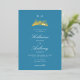Invitation En Aluminium Élégant Hiver Blue Gold Heart Monogrammes Mariage