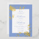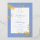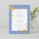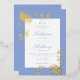 Un élégant modèle classique d'invitation à mariage d'hiver moderne avec des botaniques d'hiver délicats dessinés à la main et recouverts de feuille d'or (véritable feuille !), avec de la calligraphie pour les noms, sur un arrière - plan bleu d'hiver glacé. Ethérée, romantique et élégante, elle plaira à la mariée et au marié moderne qui sont romantiques au coeur et comme des modèles formels et traditionnels mis à jour..