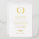 Elégante invitation de mariage dans une feuille d'or et la conception de typographie blanche avec un monogramme de couronne de laurier et de belles polices. Faire-part de mariage typographique avec un monogramme verdoyant et de belles polices. Faire-part de mariage en feuille d'or monogramme avec un design stylisé typographique et verdure.