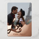 Un très élégant Save the Date dans le choix des couleurs de feuille. (en or rose) Avant présente une superposition sculptée du mot "Amour" en papier peint." Photo à l'avant et une à l'arrière. Prêt à customiser !