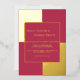 Présentez une touche de luxe à votre fête mariage avec notre faire-part de mariage en feuille moderne, avec une élégante calligraphie en or sur un arrière - plan magenta audacieux avec une structure en or. Cette invitation exhale le raffinement et le glamour, ce qui en fait le choix parfait pour votre journée spéciale. La belle calligraphie de feuille d'or est associée à un riche arrière - plan magenta, créant un contraste étonnant qui impressionne vos invités. Le stock de carton de haute qualité et votre choix de taille et de type de papier assurent une touche luxueuse et personnalisée. Que vous soyez à la recherche d'une touche d'élégance ou d'une pièce de déclaration, cette faire-part de mariage vous donnera une impression durable. Ajoutez une touche de glamour à votre célébration mariage avec cette invitation moderne en feuille d'or.