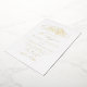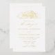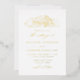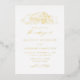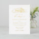Invitations de mariage rustiques avec une feuille d'or esquissée illustration d'une grange exposée en haut de l'invitation sur un arrière - plan blanc. Les invitations de mariage de la grange comportent d'élégants éléments de calligraphie en feuille d'or tout au long de la conception. Personnalisez le mariage de la grange en feuille d'or avec vos noms et détails mariages.