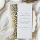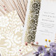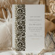 Ce faire-part de mariage magnifiquement ouvragé présente une palette de couleurs beige et ivoire raffinée aux motifs floraux complexes. La façade de la carte est ornée d'une délicate bordure florale en beige doux, offrant un cadre classique et sophistiqué pour les noms du couple et les détails mariages. Le fond de l'invitation se poursuit sur le thème floral, mettant en valeur un motif détaillé qui ajoute une touche d'élégance intemporelle. Idéal pour les couples à la recherche d'un faire-part de mariage alliant art traditionnel et design moderne, cette carte est parfaite pour une célébration mariage formelle.