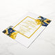 Célébrez votre journée spéciale avec notre faire-part de mariage époustouflante aux floraux bleu et jaune vif! Notre design élégant donnera le ton parfait à votre événement, alliant la beauté intemporelle des fleurs bleues à la joyeuse pop des accents jaunes. Que vous planifiez un mariage classique ou moderne, cette invitation vous impressionnera et vous fera partager la joie et le bonheur de votre union. Faites une déclaration avec notre design floral accrocheur qui capture l'essence de l'amour et de l'amour. Cette belle et élégante décoration est parfaite pour un mariage de printemps ou d'été qui présente ces teintes ! Le vrai papier d'aluminium élève ce design pour rendre encore plus spécial!