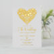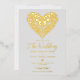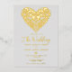 Le coeur en feuille d'or et le script d'invitation sur le devant de ce faire-part de mariage moderne romantique est à la fois formel et décontracté. Le coeur de filigree a un esprit vintage d'art populaire valentine tandis que le véritable feuille d'or prête élégance et romance à ce mariage personnalisé stationnaire. Utilisez le dos pour une photo de couple avec ou sans filtre. Un beau choix pour une mariage à thème Valentines.