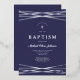 Invitation En Aluminium Élégant Marine Bleu Argent Script Garçon Baptême