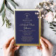 Invitation En Aluminium Elégant Marine Bleu Or Croix Religieuse Baptême