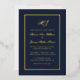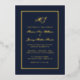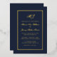 Cette élégante invitation de mariage comprend un véritable script de calligraphie de feuille d'or et un cadre de feuille d'or sur un arrière - plan bleu marine. Félicitations pour votre prochain mariage ! Conçu par Susan Coffey.