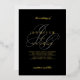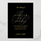 Un élégant monogramme gris clair et tendance avec de vraies typographies de feuilles d'or brillantes dans des invitations de mariage noir à thème moderne et élégant.