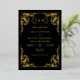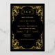 Invitation En Aluminium Élégant or Foil Ornate Monogramme Mariage noir
