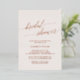 Cette élégante carte d'invitation en feuille d'or rose rose pâle pour la douche nuptiale est parfaite pour une simple douche nuptiale. Le design neutre présente une carte minimaliste décorée de typographie romantique et fantaisiste. Personnalisable en plusieurs couleurs.