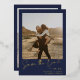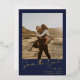 Invitation En Aluminium Élégant script bleu marine 2 photos enregistrer la